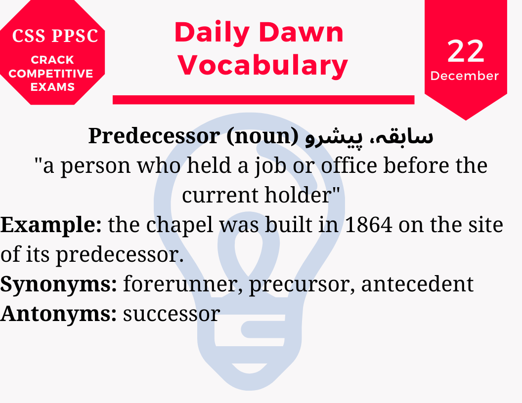 Each aspirant understands the significance of the language and vocabulary of English. We have begun a new trend of posting vocabulary on our website in order to encourage aspirants. In this way aspirants can save time and enhance their vocabulary. Moreover PDF file is also available for aspirants. So, keep in touch with us for daily dawn vocabulary with Urdu meaning.
